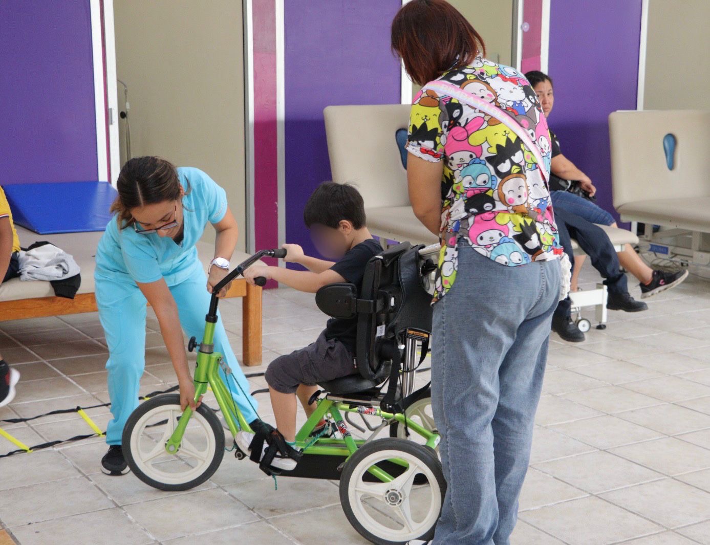 “Estos ejercicios en triciclos especiales permiten adquirir mejor coordinación y equilibrio, lo que da mayor estabilidad al comenzar a caminar e incluso al conducir”, señaló la terapeuta.