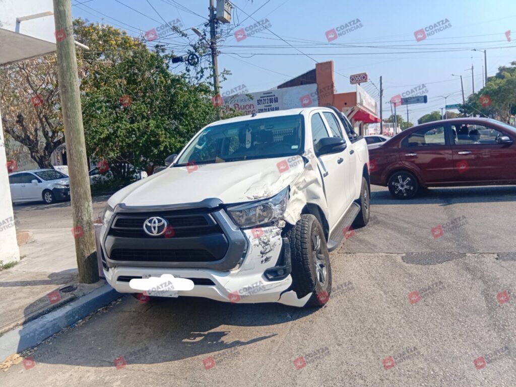 Solo daños materiales cuantiosos, dejó como saldo un percance vial entre dos camionetas particulares, que se registró la tarde de este lunes 9 de marzo, en calles de la colonia Manuel Avila Camacho de Coatzacoalcos.