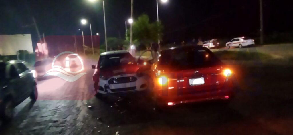 Accidente vial en el retorno de la avenida Universidad frente a la zona de hoteles del fraccionamiento de Las Gaviotas entre un automóvil particular y un vehículo del servicio público alrededor de las 21:15 horas, no se reportaron lesionados por ambas partes.