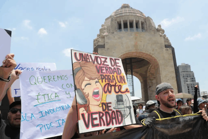 Bajo el lema ‘una sola voz’, artistas, locutores, actores de doblaje y creativos mexicanos protestaron este domingo en la capital del país para exigir una legislación que regule el uso de la voz humana frente al avance de la Inteligencia Artificial (IA).