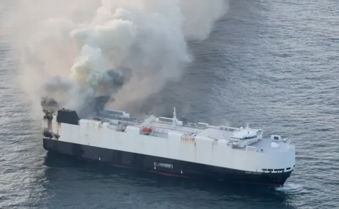 La tripulación de 22 personas fue evacuada con éxito en botes salvavidas y rescatada por un buque cercano; no se reportaron heridos . El incendio inició el 3 de junio en la cubierta de la popa, donde se almacenaban unos 70 vehículos eléctricos y 680 híbridos, lo que dificultó su extinción .