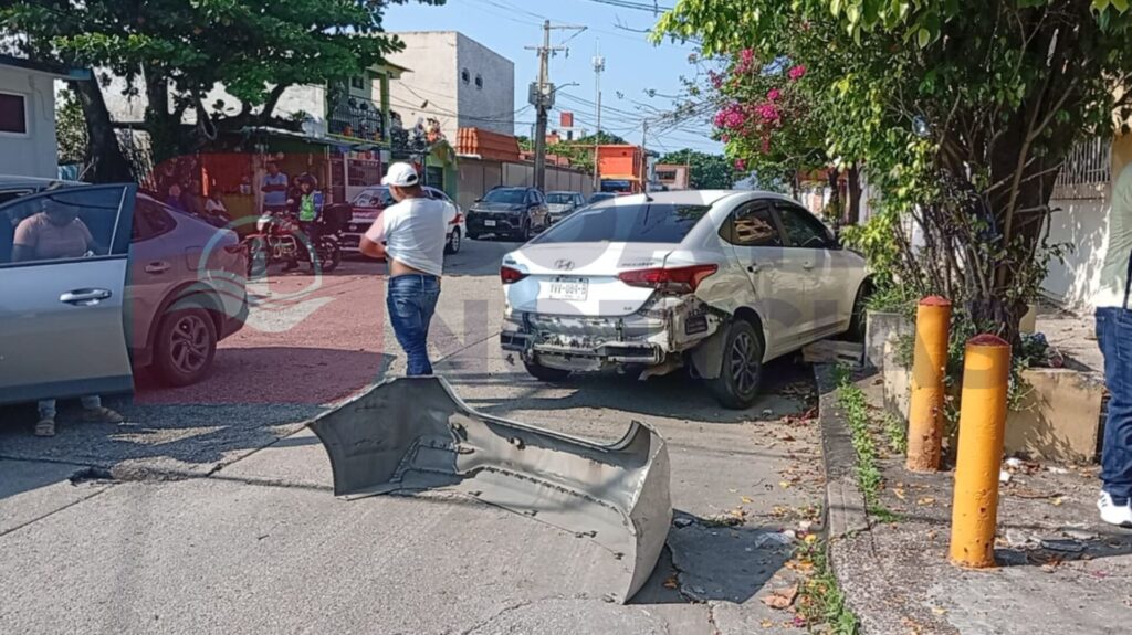 Una dama con golpes y cuantiosos daños materiales, fue el saldo de una carambola de vehículos, que se registró en calles de la colonia Guadalupe Victoria de Coatzacoalcos.