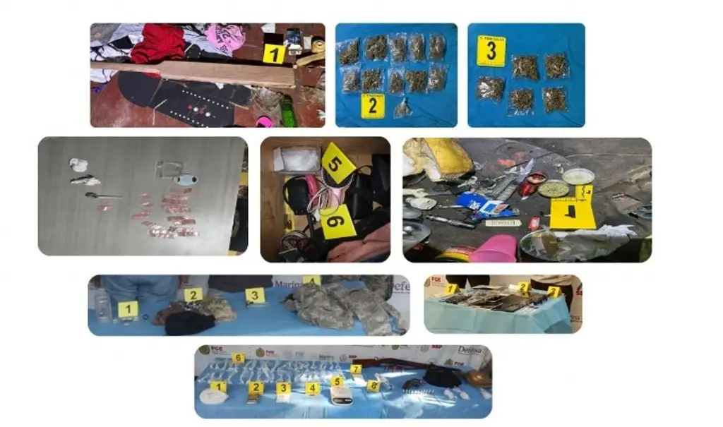 Durante este periodo se realizaron 8 operativos, los cuales derivaron en la detención en flagrancia de 8 personas y el aseguramiento de sustancias con características similares a narcóticos, armas y diversos objetos presuntamente vinculados con actividades ilícitas.En los municipios de Cardel, Álamo Temapache, Minatitlán, Tuxpan, Jalacingo, Playa Vicente, fueron asegurados pipas, hierba seca con características similares a la marihuana, piedra granulada y polvo blanco con características similares al cristal, una tabla de castigo, pasamontañas, una camisola, radios, cartuchos de arma de fuego, teléfonos celulares, una mira telescópica, un arma corta, un arma larga, una báscula gramera, una báscula digital, grinders, un triturador y un cargador metálico para arma larga.