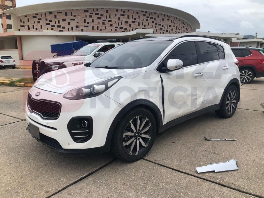 Que impactó contra una camioneta marca Kia, tipo Sportage, color blanco, con placas XYF-777-C del estado de Veracruz.