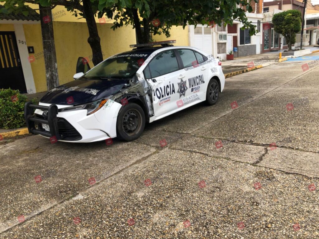 Según testigos, una elemento de nuevo ingreso quería aprender a manejar la patrulla, pero en el primer intento estampó la unidad contra un objeto fijo.