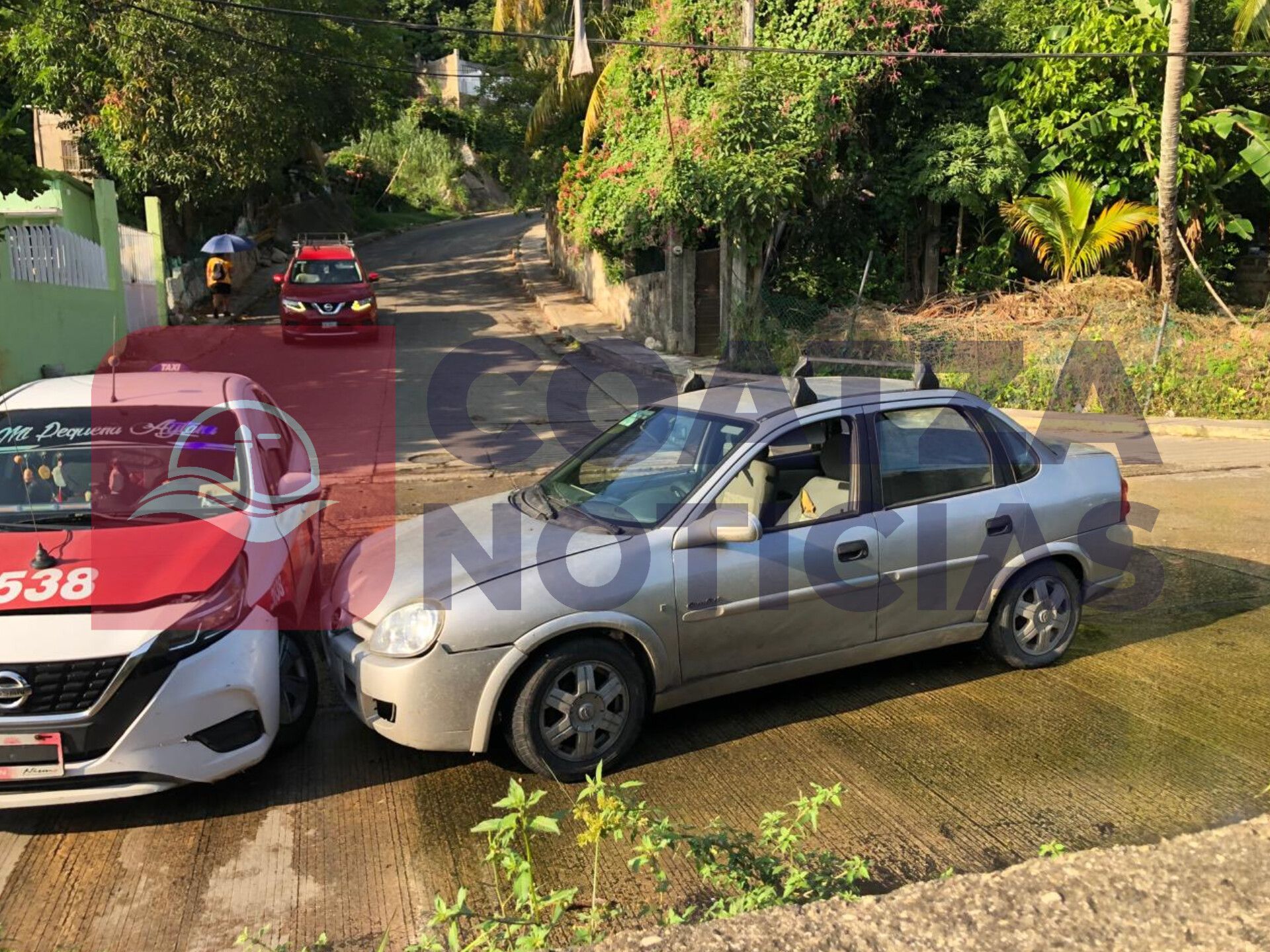 Donde colisionaron un automóvil marca Nissan, tipo March, habilitado como taxi de este puerto, con número 3538, contra un automóvil marca Chevrolet, tipo Chevy, color gris, con placas YKK-711-B del estado de Veracruz.