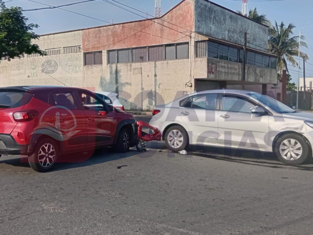 Un accidente vial entre dos vehículos se registró en la colonia Benito Juárez Norte de Coatzacoalcos, dejando únicamente daños materiales como saldo.