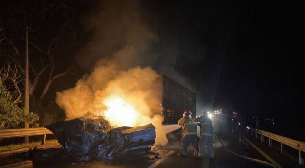 En el lugar fue localizada una persona sin vida, identificada mediante una credencial del INE como Juan Ramón Magno Morán, originario del estado de Quintana Roo. Su cuerpo quedó tendido sobre el asfalto, a escasos metros de los restos calcinados del vehículo.