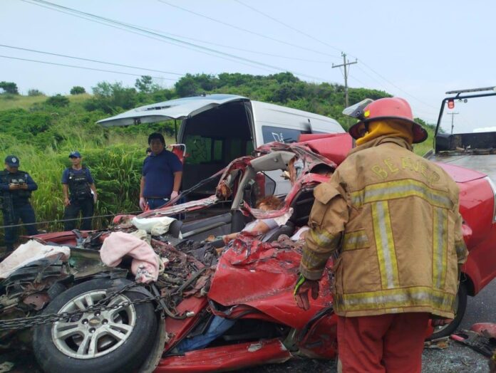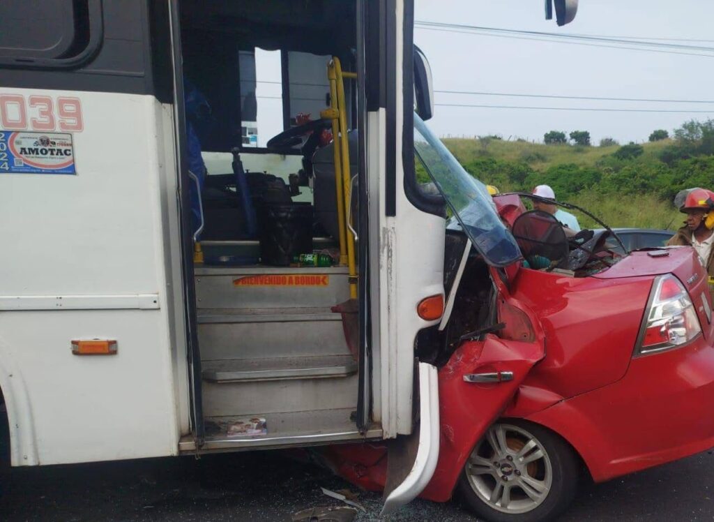El incidente ocurrió alrededor de las 5:30 horas, a la altura de la localidad de Arbolillo, donde un autobús de la línea Sotavento presuntamente invadió el carril contrario e impactó de frente a un automóvil Chevrolet Aveo de color rojo.