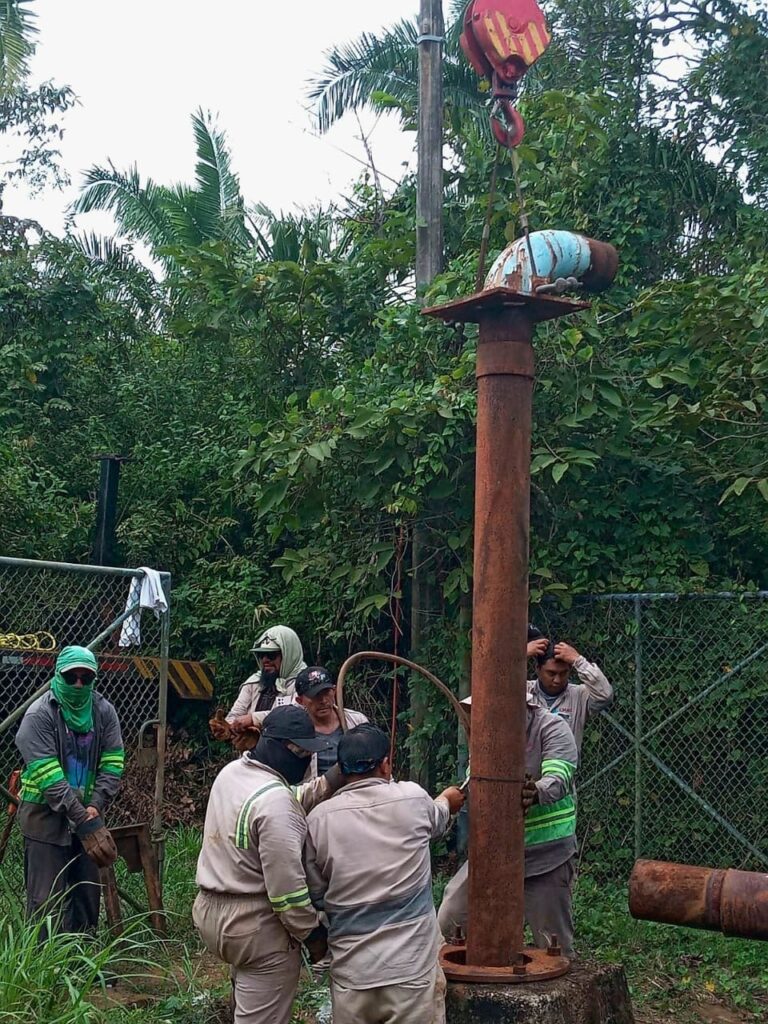 Las labores consisten en la sustitución de las bombas de ambos pozos, acciones necesarias para mejorar la operación del sistema y permitir el restablecimiento del servicio de agua potable, situación que afectaba a los vecinos del sector debido a la baja presión en la red de distribución.