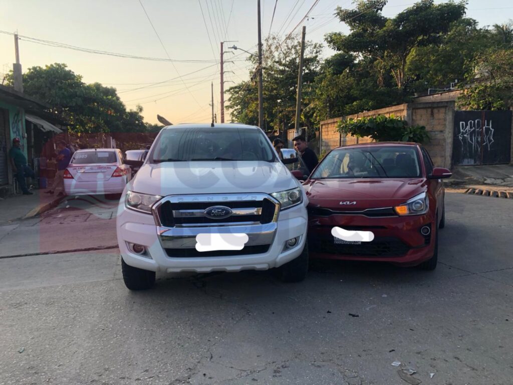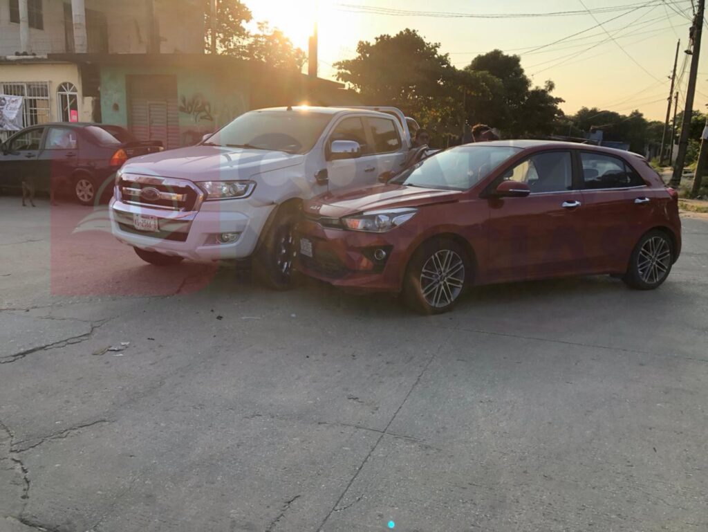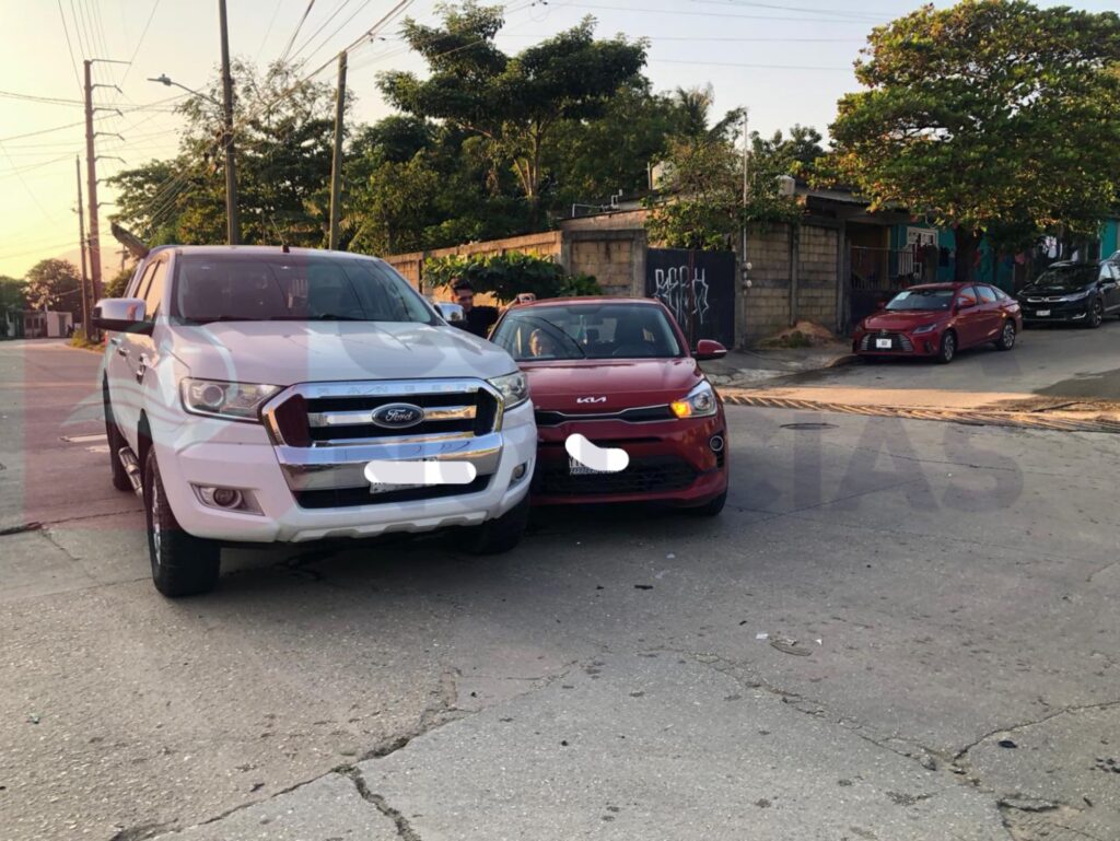 Los hechos se registraron alrededor de las 4 de la tarde, en la esquina de la avenida Las Palmas y la calle General Anaya, donde colisionaron un automóvil marca Kia, tipo Río, color rojo, con placas YBG-343-B del estado de Veracruz, contra una camioneta marca Ford, tipo Ranger, color blanco, con placas de circulación XS-2566-B, de la misma entidad.