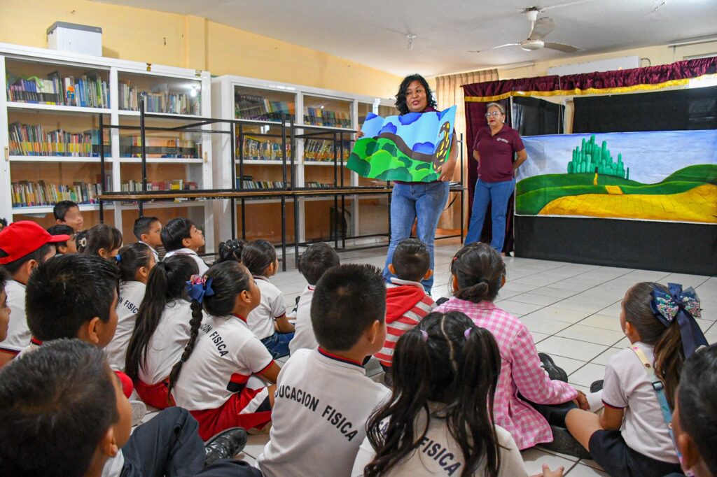 Coatzacoalcos, Ver., 24 de junio de 2025.- Con varias historias que les hicieron volar la imaginación, alrededor de 250 alumnos de la primaria Adrián Zamora López, disfrutaron de las ‘Actividades Extramuros’ que les acercó la biblioteca municipal ‘Profesor Francisco Mata Aguilar’ hasta sus aulas.