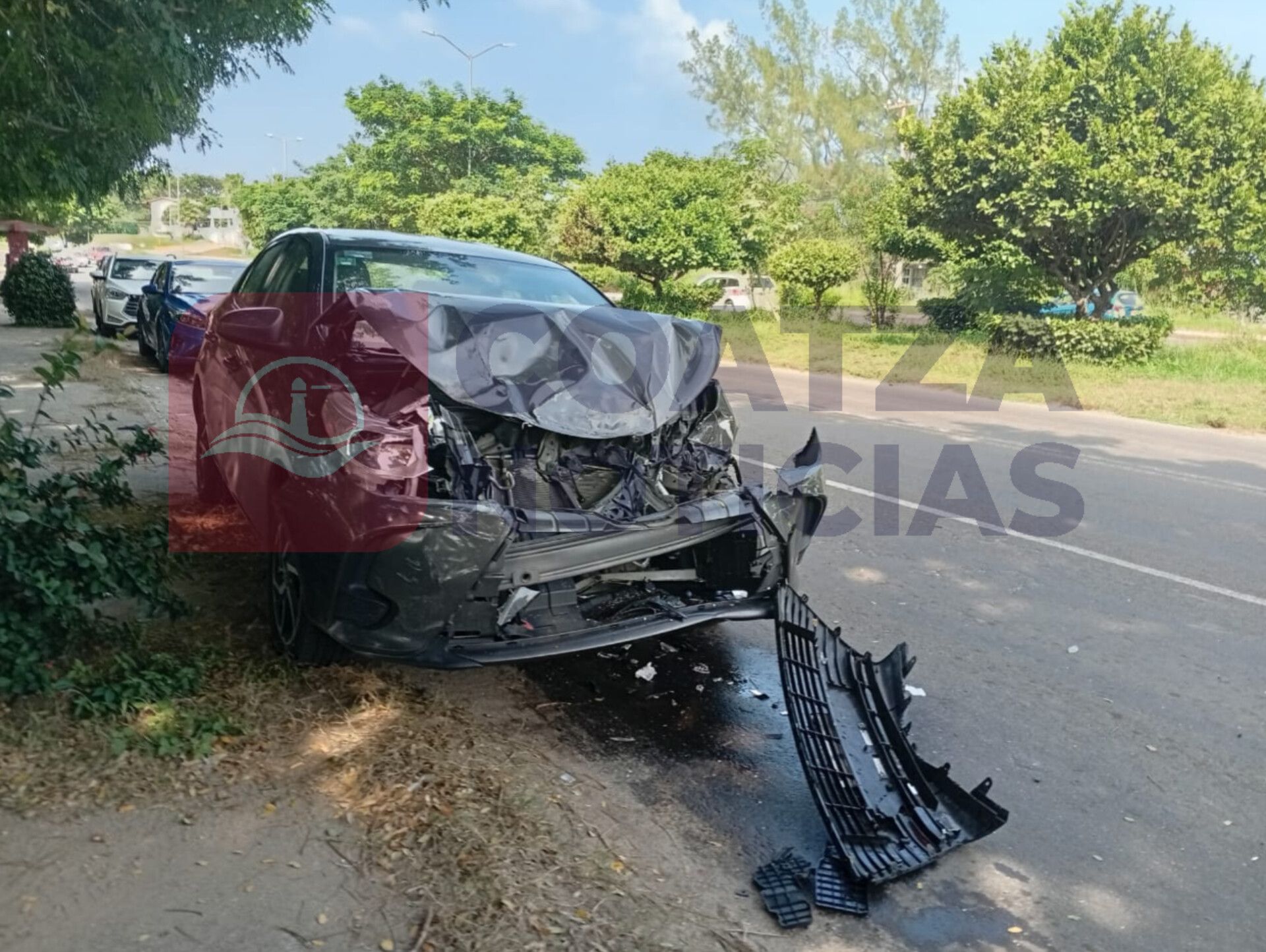 El camión continuo dando el servicio, pero la aseguradora del auto tuvo que solicitar una grúa, pues quedó destrozado.