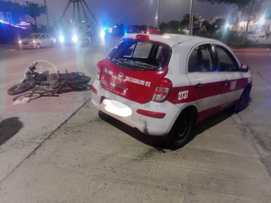 Al llegar al acceso a la colonia Bahía de San Martín, el conductor del taxi redujo la velocidad para incorporarse a dicha vialidad; sin embargo, el operador de la motocicleta no se percató de la maniobra y terminó impactándose en la parte trasera de la unidad de alquiler.