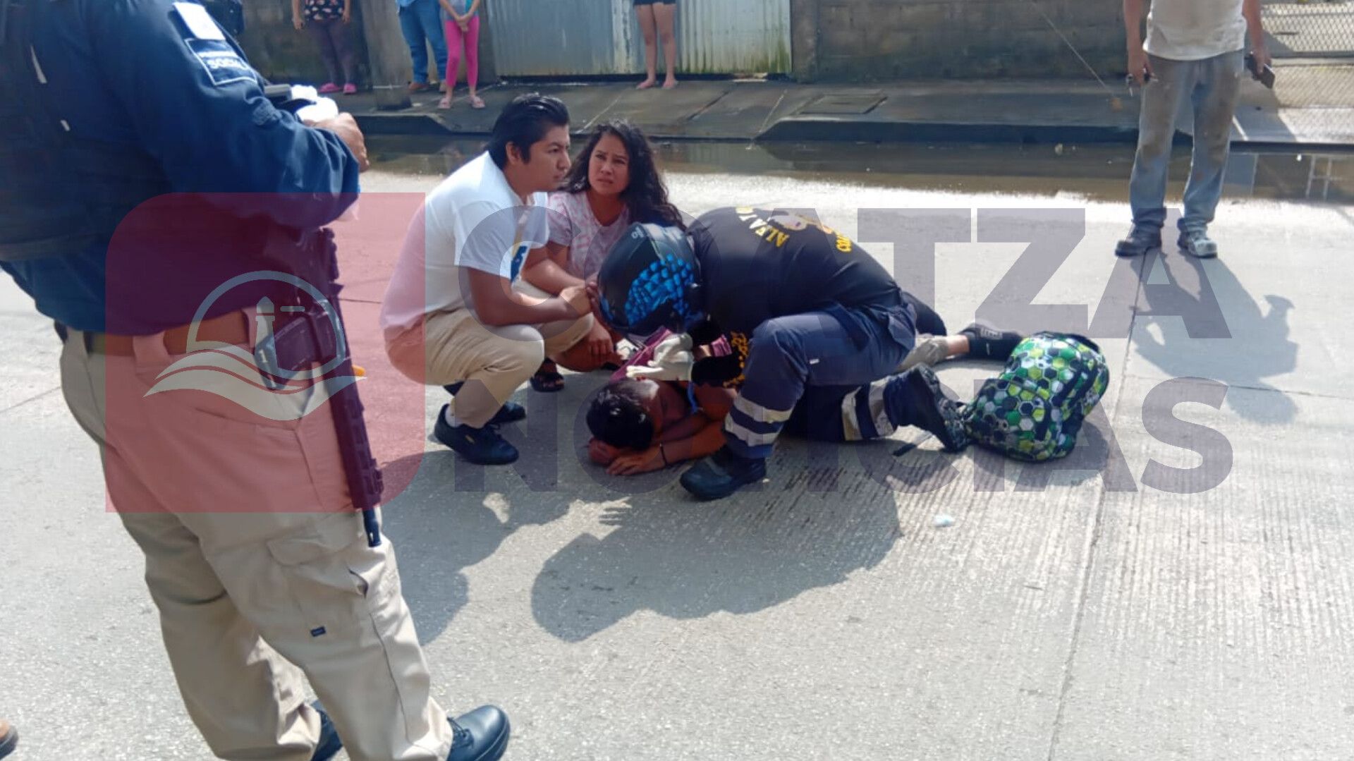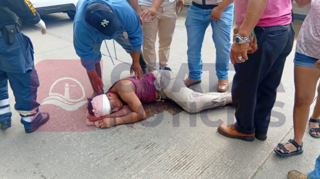 El lesionado sufrió un fuerte golpe en la cabeza al caer contra el pavimento, pero la ambulancia nunca llegó, por lo que fue trasladado al hospital a bordo del taxi número 280, con placas A-580-XCF.