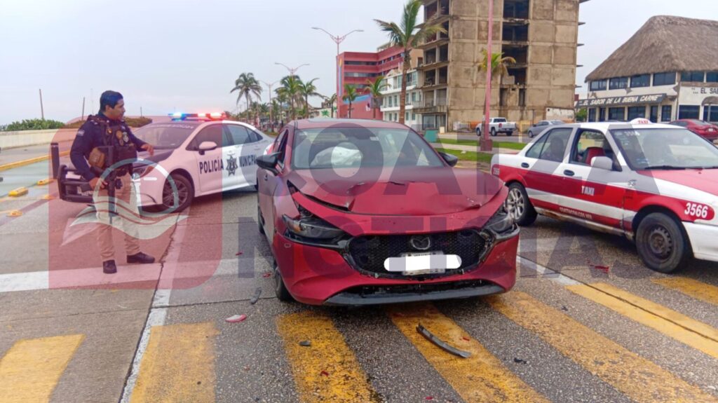 El accidente ocurrió cuando ambos vehículos circulaban de oriente a poniente sobre el Malecón, pero la conductora del Jetta se detuvo a esperar la luz verde del semáforo.