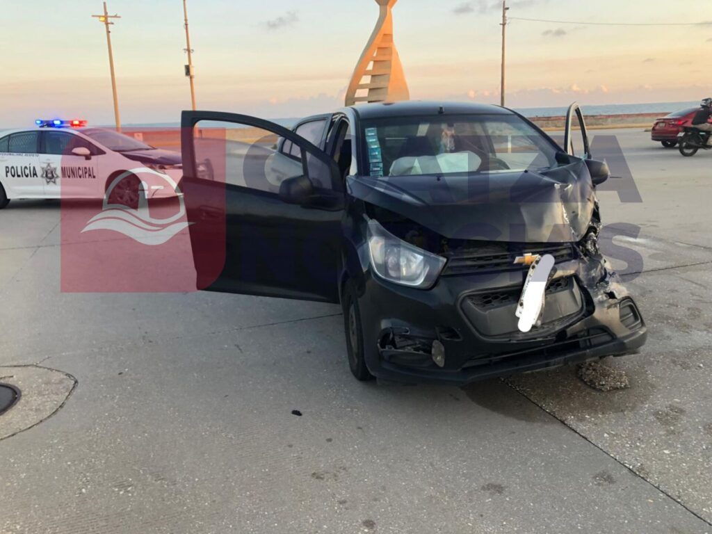 La camioneta transitaba de oriente a poniente sobre el Malecón, pero al llegar al cruce, giró para incorporarse a la calle Zabludovsky, provocó el impacto contra el auto que se desplazaba de poniente a oriente sobre la misma vialidad.