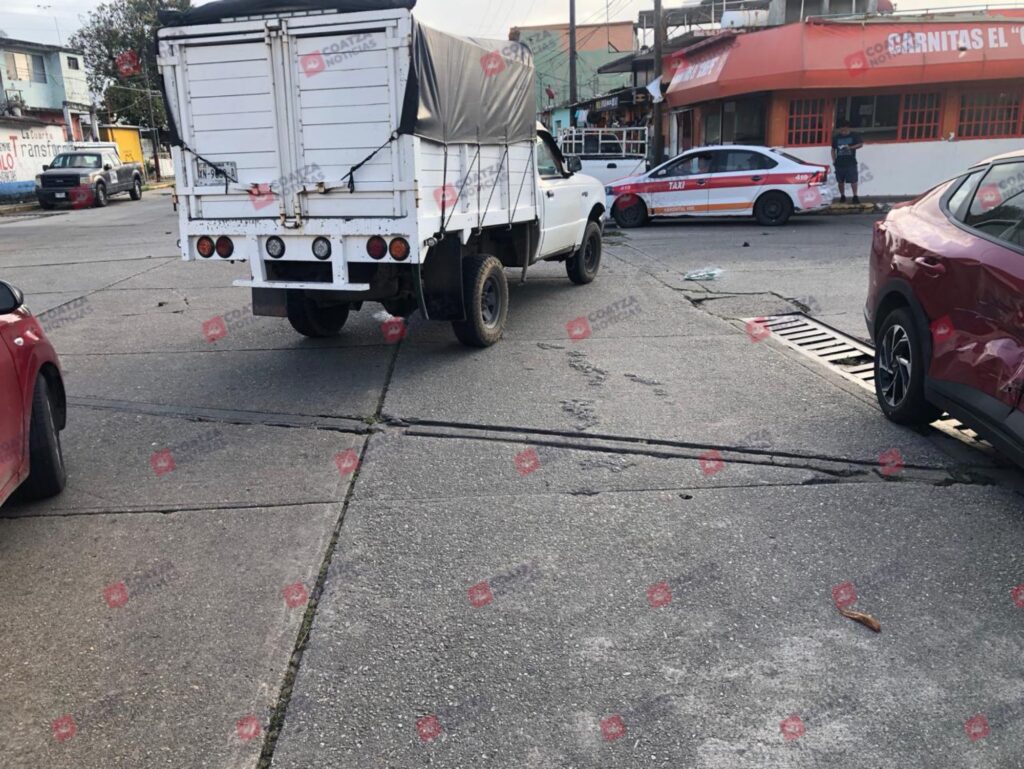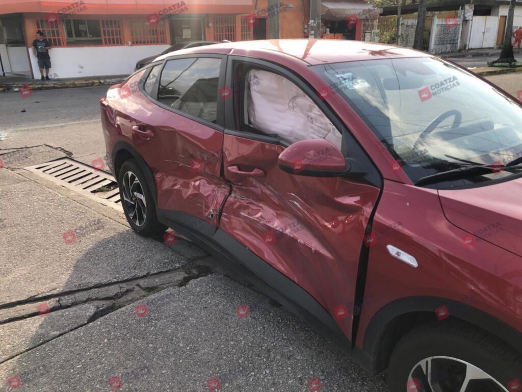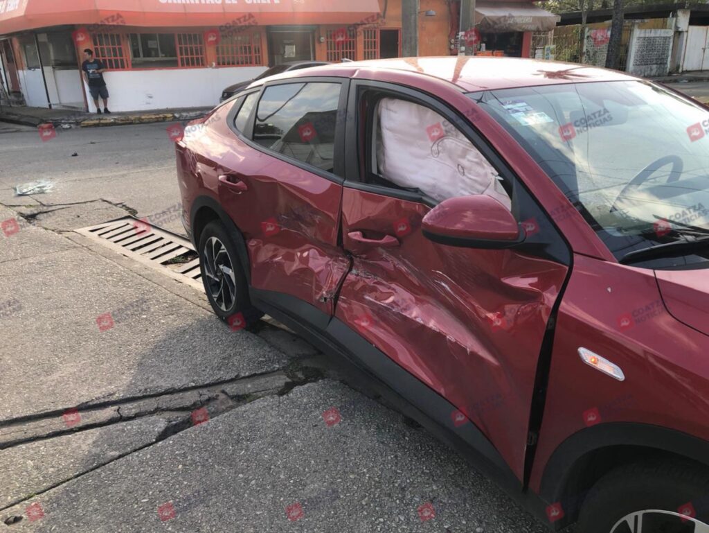 Una mujer en estado de gestación resultó con golpes contusos y se registraron daños materiales cuantiosos, tras un accidente automovilístico ocurrido la mañana de este lunes 23 de febrero, en el centro de Coatzacoalcos.
