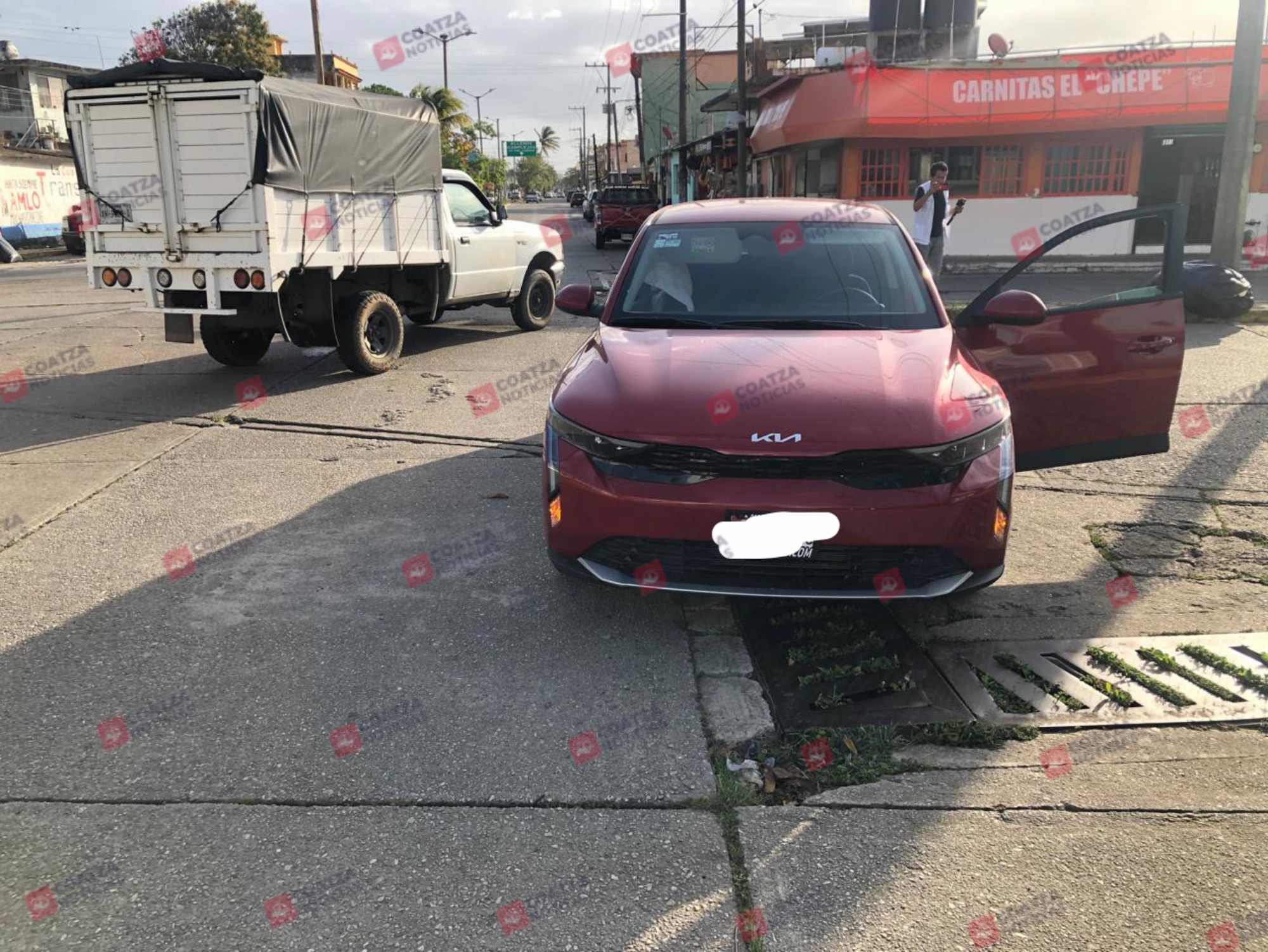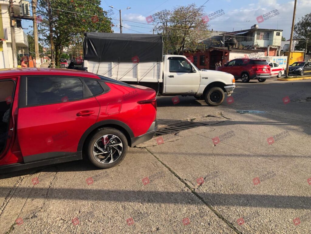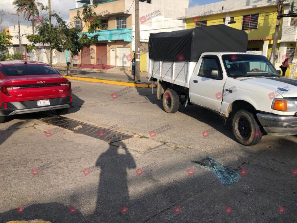 Los hechos se registraron minutos antes de las 8 de la mañana, en la esquina de General Anaya y Vicente Guerrero, donde colisionaron un automóvil marca Kia tipo K3, color rojo, con placas de circulación YFX-561-C, y una camioneta marca Ford tipo Ranger, color blanco, de redilas, con placas XN-9038-A, ambos del estado de Veracruz.