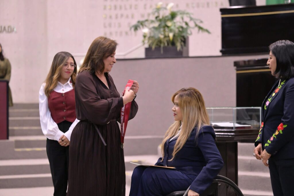 Como reconocimiento a su dedicación en la lucha por la accesibilidad, la inclusión y el deporte y contra las barreras que enfrentan las personas con discapacidad, la LXVII Legislatura del estado entregó la medalla y diploma Adolfo Ruiz Cortines, edición 2025, a la ciudadana María Luisa Bandala Pantoja.