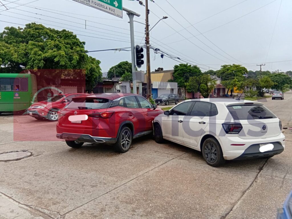 Una falla en los semáforos de la esquina de Juan Escutia y Avenida Uno de la colonia Benito Juárez Norte, provocó que los conductores de dos autos se confiaran y terminaron colisonando.