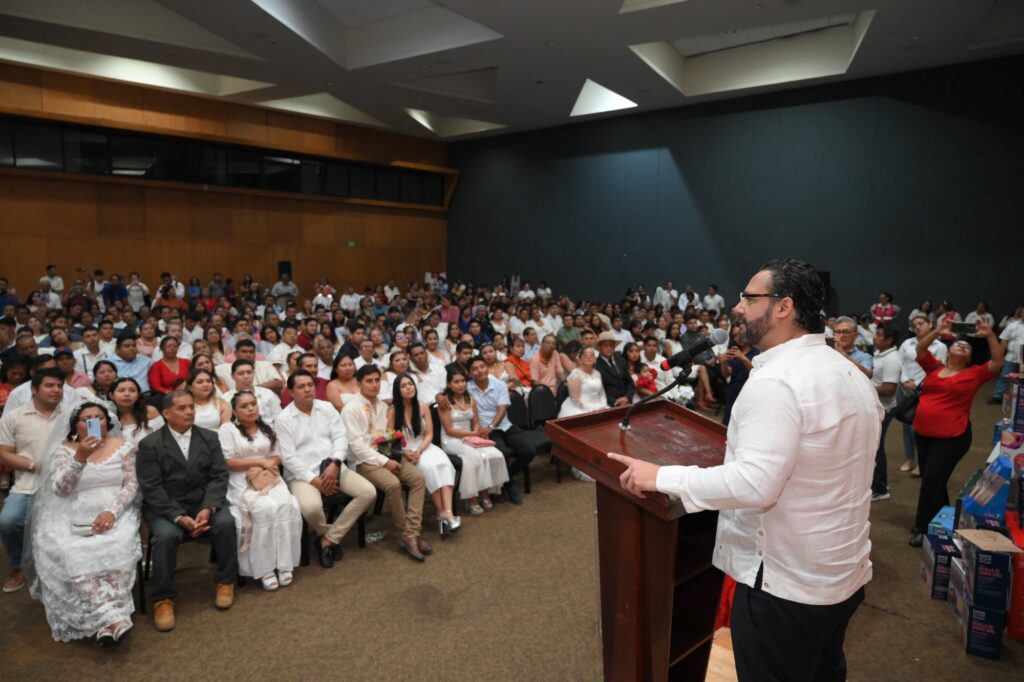 Durante el evento, el presidente municipal, acompañado de la presidenta del Sistema DIF Municipal, Sonia Marie Salvador Goraieb, felicitó a las parejas por dar este paso y destacó que el matrimonio civil no solo consolida un proyecto de vida en común, sino que también brinda estabilidad y seguridad legal para las familias.