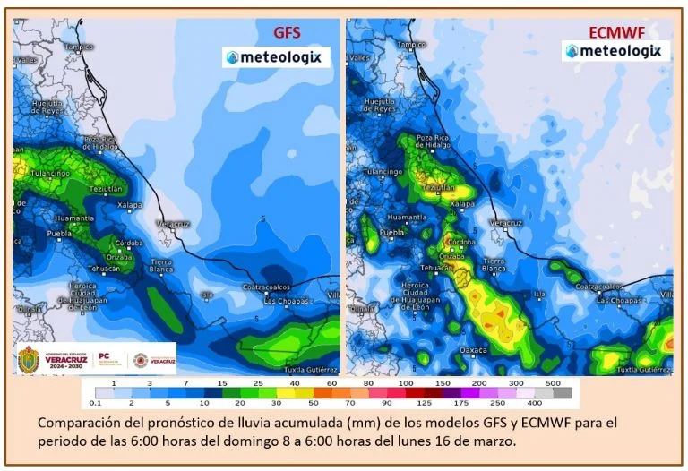 Los 10 municipios de Veracruz donde se pronostican las lluvias más fuertes desde el día11 de marzo, y al menos hasta el 13, son: