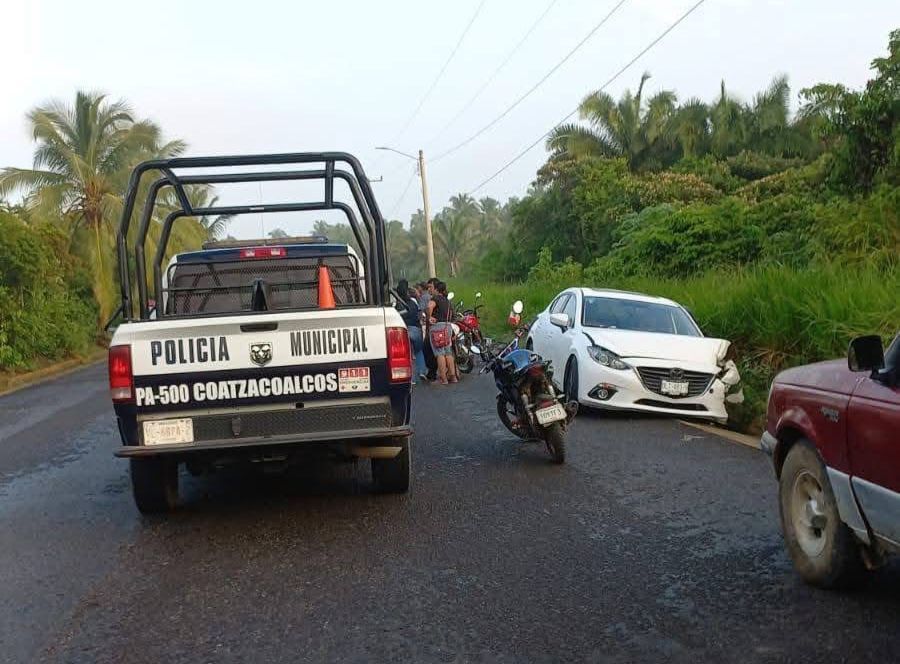 Con g0lp3s y rasp0n3s en diferentes partes del cuerpo acabó una mujer, después de que la moto en que viajaba chocara la mañana de este domingo contra un automóvil, en el ejido Colorado de Coatzacoalcos.