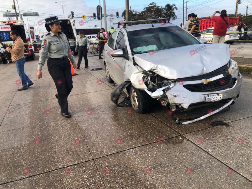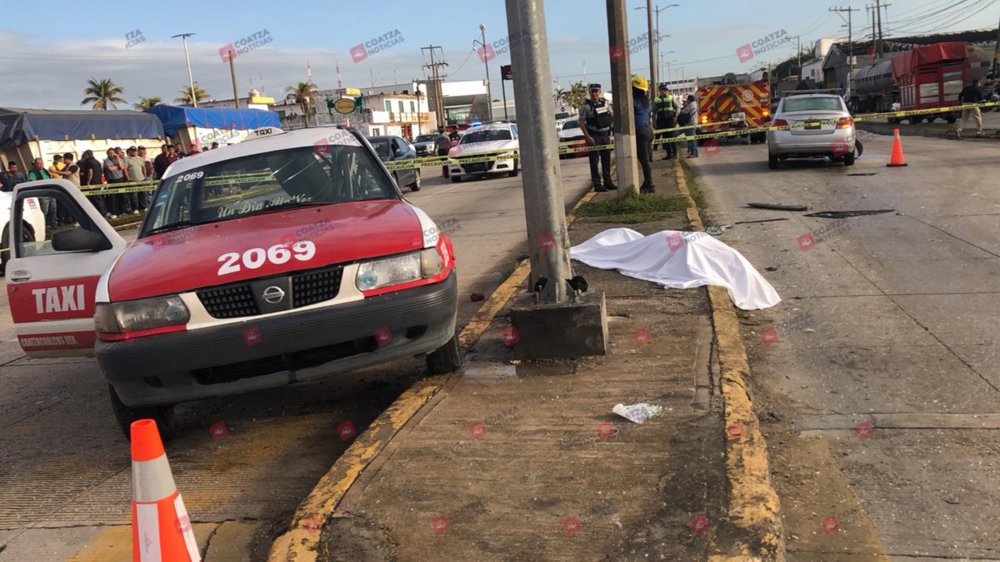 El fatal percance ocurrió cuando un automóvil marca Nissan tipo Tsuru, habilitado como taxi con número económico 2069 y sin placas de circulación, impactó contra un vehículo particular marca Chevrolet, tipo Aveo, color gris, con placas YRB-212-A del estado de Veracruz.