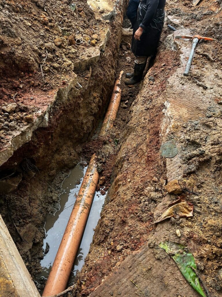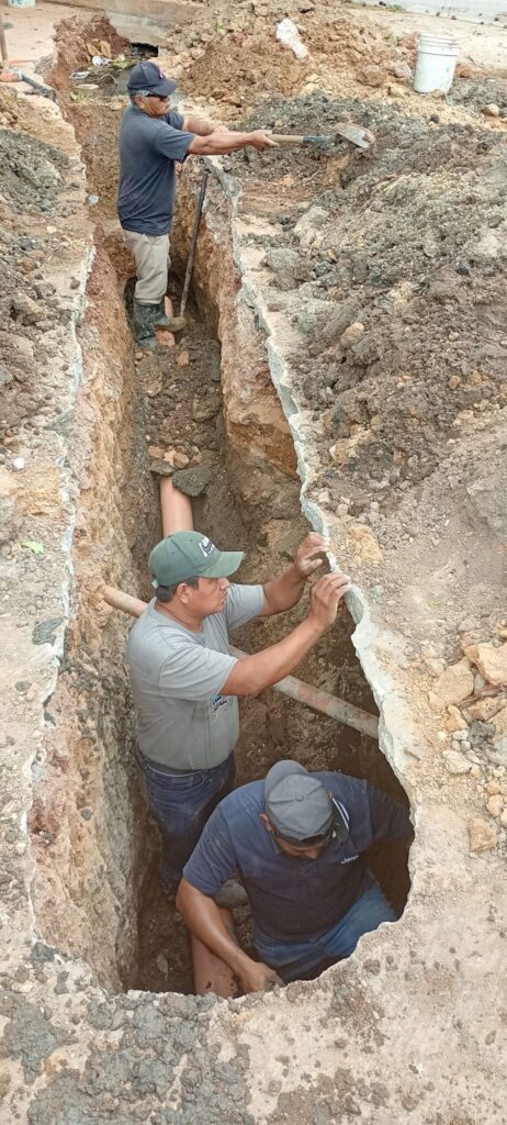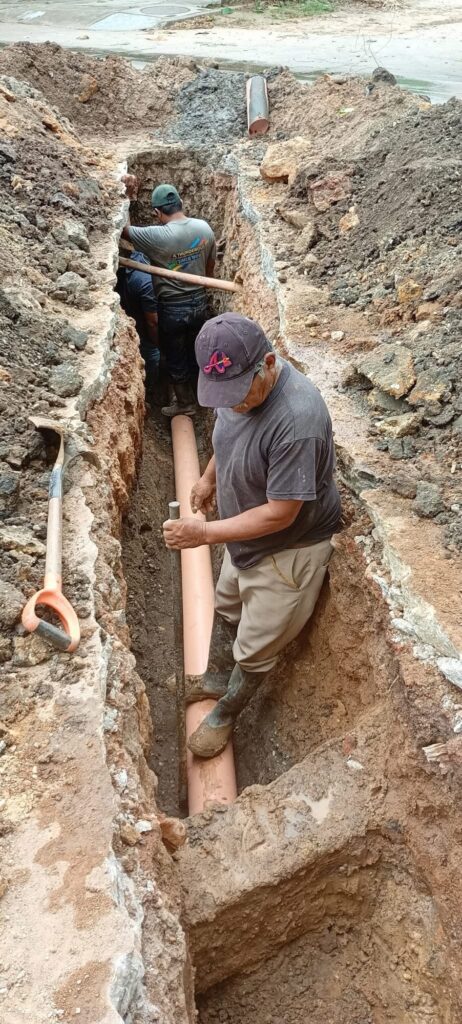 Como parte de estas acciones, se lleva a cabo la sustitución de tuberías de concreto simple por material PVC de 8 pulgadas, lo que permitirá mejorar la eficiencia del sistema.