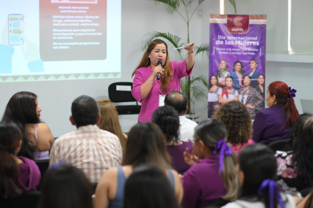 Entre las ponencias destacaron “Tipos de violencia”, impartida por la licenciada Karla Montserrat Fuentes; “Instalación y uso de aplicaciones móviles para la seguridad”, presentada por la licenciada Ilima Abi Anaya Hernández; y “Mujer que estudia, mujer que transforma”, expuesta por Susana Zuleyma Reyes Leyva.