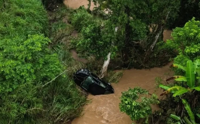 El agua arrastró automóviles estacionados y se dice que en uno de los vehículos había una familia atrapada que gritaban pidiendo ayuda.