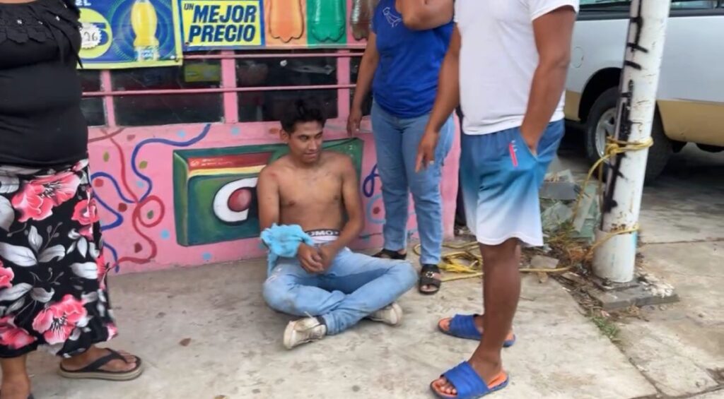 De acuerdo con los primeros reportes, comerciantes y taxistas de la zona persiguieron al presunto responsable tras ser alertados del atraco. Al darle alcance, lo sometieron y amarraron con la intención de golpearlo, mientras exigían la presencia de las autoridades.