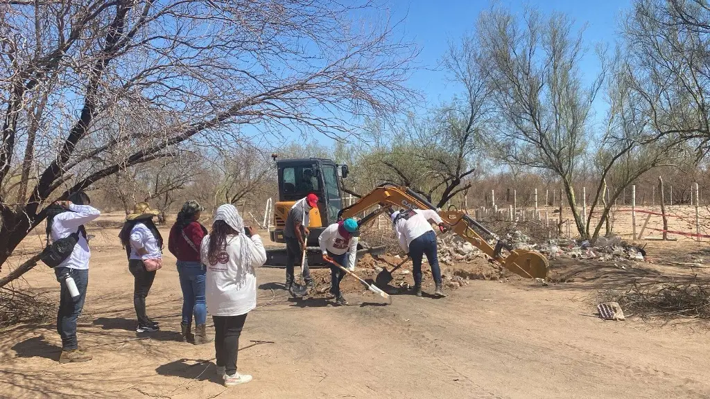 En la página de Facebook del colectivo, las buscadoras transmitieron en vivo momentos de la búsqueda, que comenzó el viernes, donde se les ve escarbando la tierra con sus manos, picos y palas, acompañadas de algunos policías, en una zona rodeada de casas.