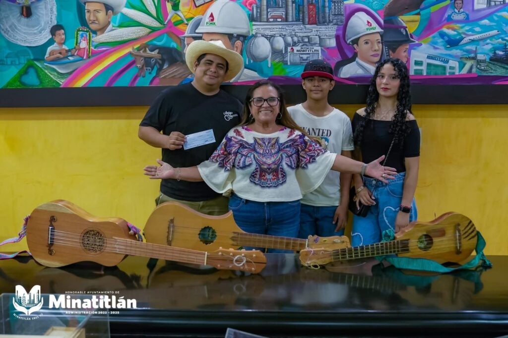 La presidenta municipal de Minatitlán, Dra. Carmen Medel Palma, recibió con entusiasmo al grupo de son jarocho “Los Nietos de Nicolás”, quienes representarán con orgullo al municipio en el festival “Creadoras de Sueños y Realidades: Mujeres Indígenas y Afrodescendientes”, que se celebrará del 25 al 27 de julio en la Ciudad de México.