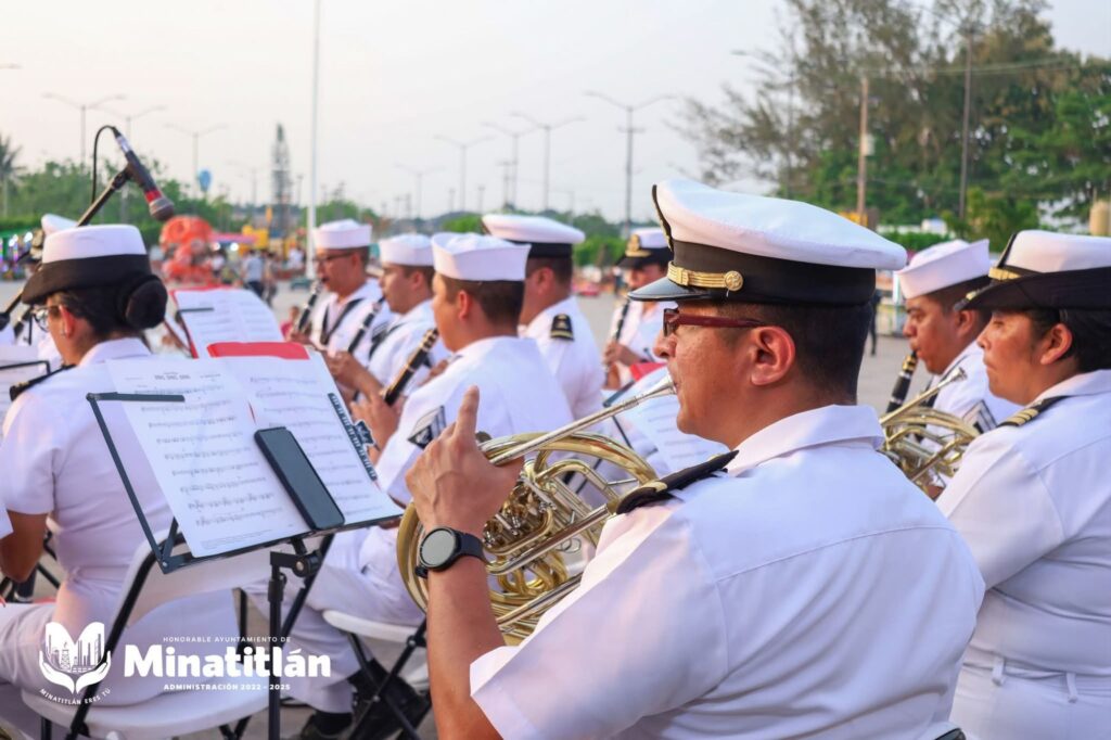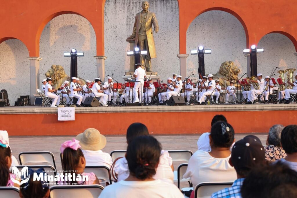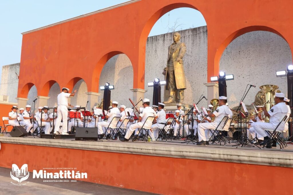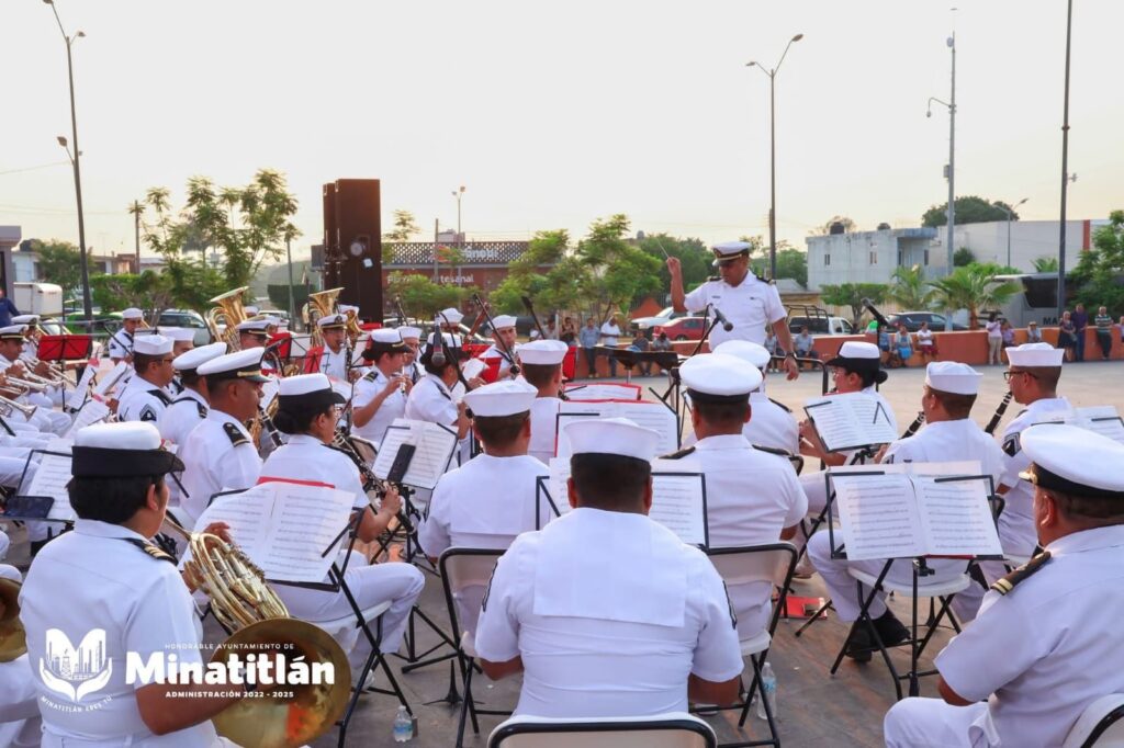 En un ambiente lleno de música, orgullo y tradición, el municipio de Minatitlán se vistió de gala con la destacada presentación de la Banda Sinfónica de la Secretaría de Marina Armada de México, que deleitó al público con un repertorio excepcional en el parque Reforma.