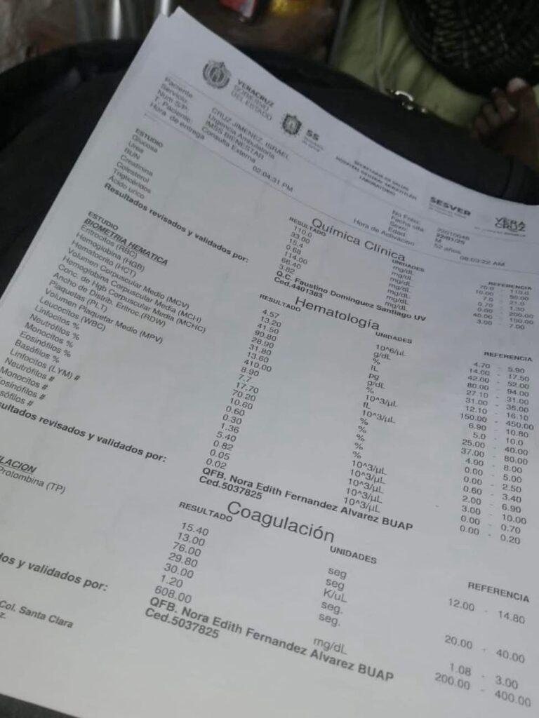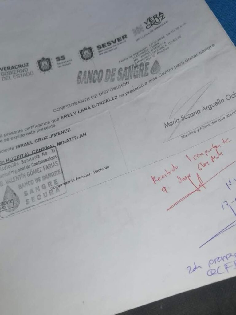 Después de múltiples valoraciones en Minatitlán y tras ser canalizado al Hospital de Alta Especialidad en Veracruz, se le informó que debía reunir donadores de sangre para poder ser intervenido. Primero le solicitaron tres unidades, ahora le piden seis. El problema es que las unidades donadas en Coatzacoalcos no se transfieren a Veracruz, por lo que sus donadores deben trasladarse directamente hasta allá para donar. A esto se suma un nuevo obstáculo, un cambio de médico que implica una nueva revaloración y, por ende, más tiempo de espera.