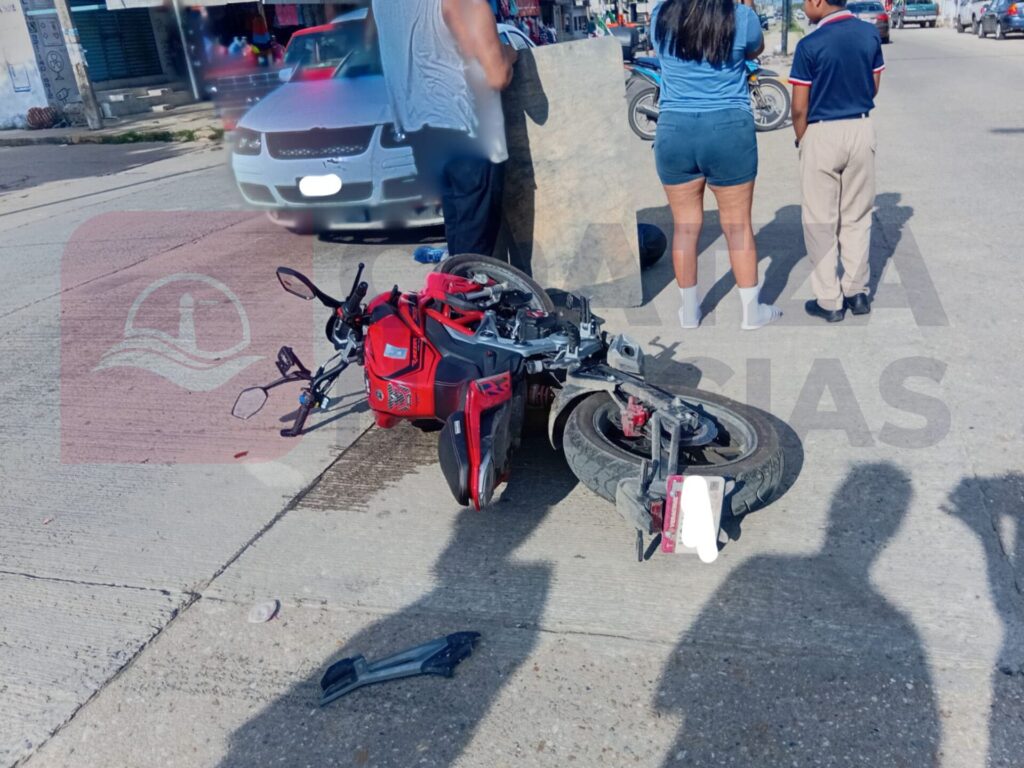 El accudente ocurrió cuando la motocicleta transitaba de sur a norte sobre Kukulcán, pero al llegar al cruce no respetó la preferencia y se impactó contra el auto que se desplazaba de poniente a oriente sobre Juan Osorio.