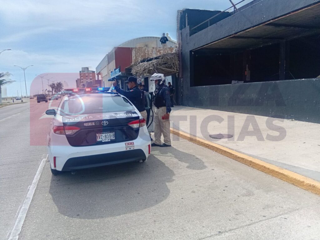 Debido que falleció en un local que antes funcionaba como antro en el Malecón, acudió la policía para resguardar el área.