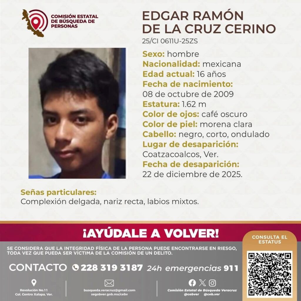 Así pasan estas fechas las familias de los empresarios desaparecidos en Sayula de Alemán: Jesús Trujillo Pacheco, José Francisco Sánchez Avendaño y Carlos Alberto Bernáldez Cartagena. Así también las de Ángel Alexis Cortés Padua, Manuel Arnoldo Carmona Ramales y Víctor Hernández Salinas, privados de la libertad en Chinameca. Y así, con el corazón recién herido, la familia de Edgar Ramón de la Cruz Cerino, joven de Coatzacoalcos desaparecido hace apenas unos días.
