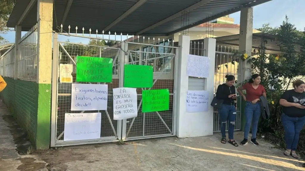 Las madres de familia llegaron para colocar cartulinas con leyendas de protesta en el portón de la escuela primaria con leyendas que señalan “Basta de tanta pedidera de dinero”; “El pueblo manda, el pueblo decide”, “Las decisiones se toman entre todas, no solo de la directora y la tesorera”, “Fuera la tesorera, la conserje y la directora”.