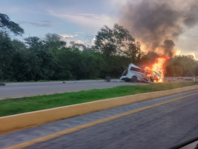 Entre las víctimas se encuentran el conductor del tractocamión y una persona calcinada en el interior del taxi.