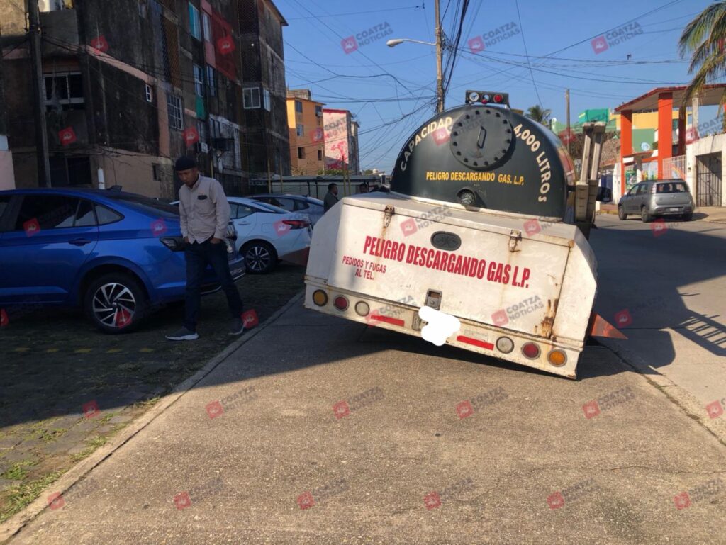 Tremendo susto se llevaron vecinos de la colonia Vistalmar, en Coatzacoalcos, luego de que una pipa gasera de la empresa «El Gallito», cayera a un registro durante la mañana de este martes 3 de febrero, generando alarma entre los habitantes de la zona.