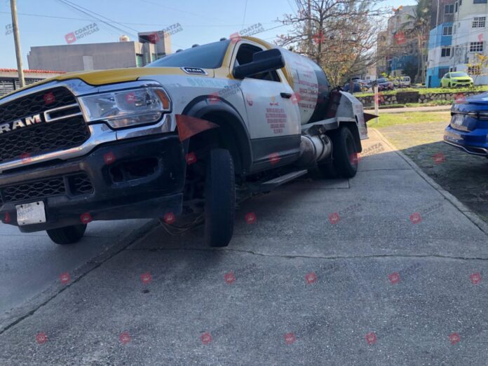 Pipa gasera cae a registro en la colonia Vistalmar de Coatzacoalcos