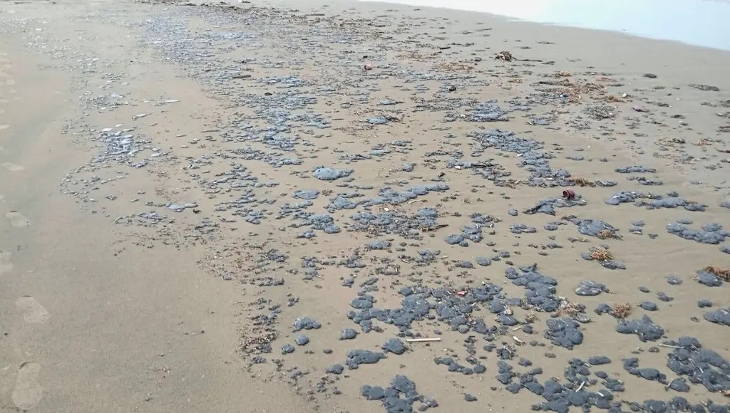 La presencia de chapopote se extendió a playas de Coatzacoalcos, donde se observaron manchas de hidrocarburoa lo largo de varios kilómetros de la zona costera.