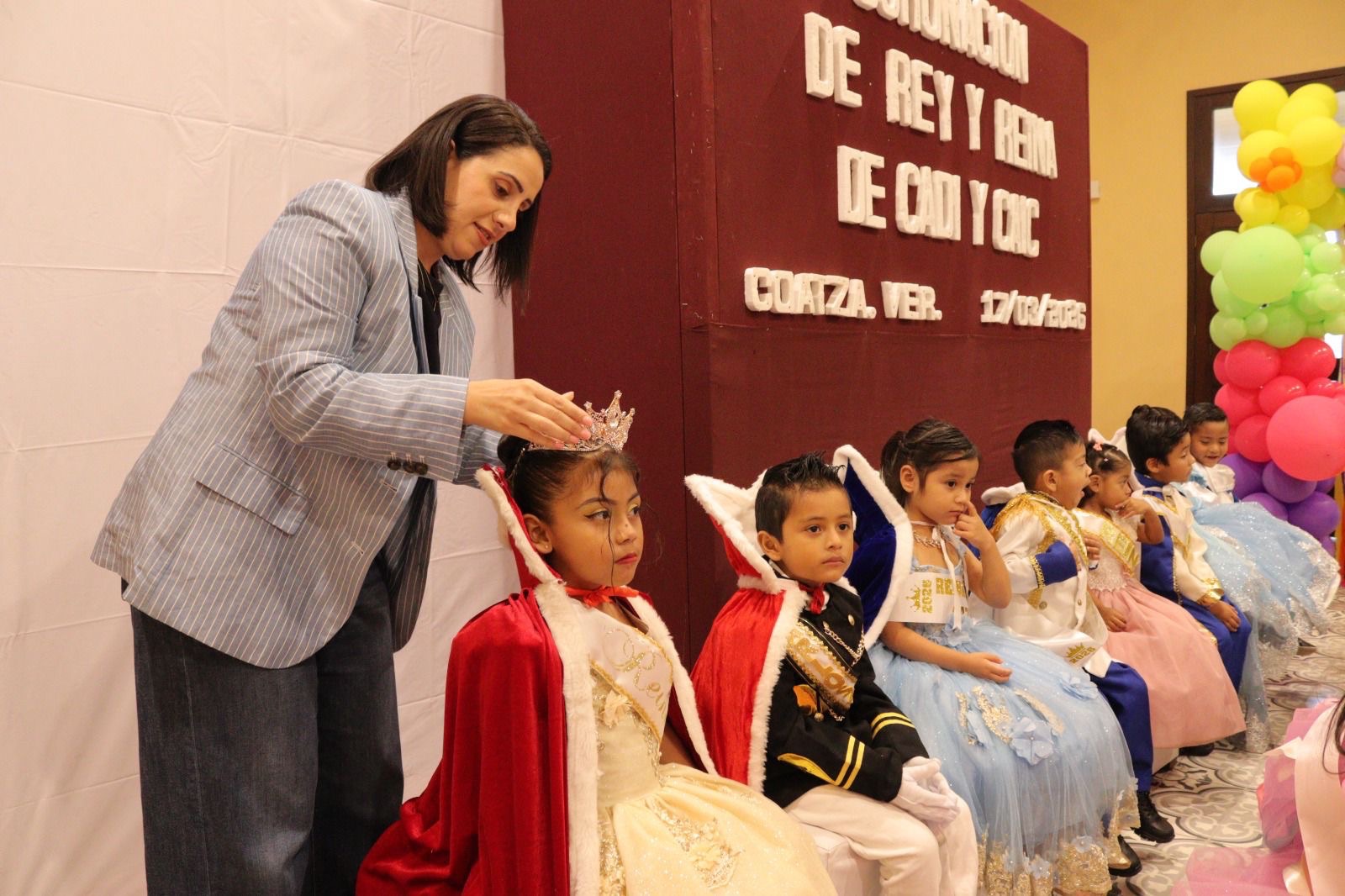 Acompañada del personal educativo del DIF Coatzacoalcos y de padres de familia, la titular del organismo, Salvador Goraieb, coronó a 40 reinas y reyes infantiles en una emotiva ceremonia desarrollada en Casa Chantli, en la zona centro de la ciudad.