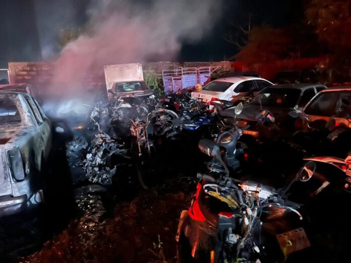 La madrugada de este domingo se registró un nuevo ataque contra la empresa Grúas MG, cuando sujetos desconocidos incendiaron el corralón ubicado en el libramiento I de Acayucan, a la altura de la subestación de la CFE. El fuego alcanzó 27 unidades, entre ellas 21 motocicletas, tres camionetas de batea, dos cerradas y un automóvil. No hubo personas lesionadas.
