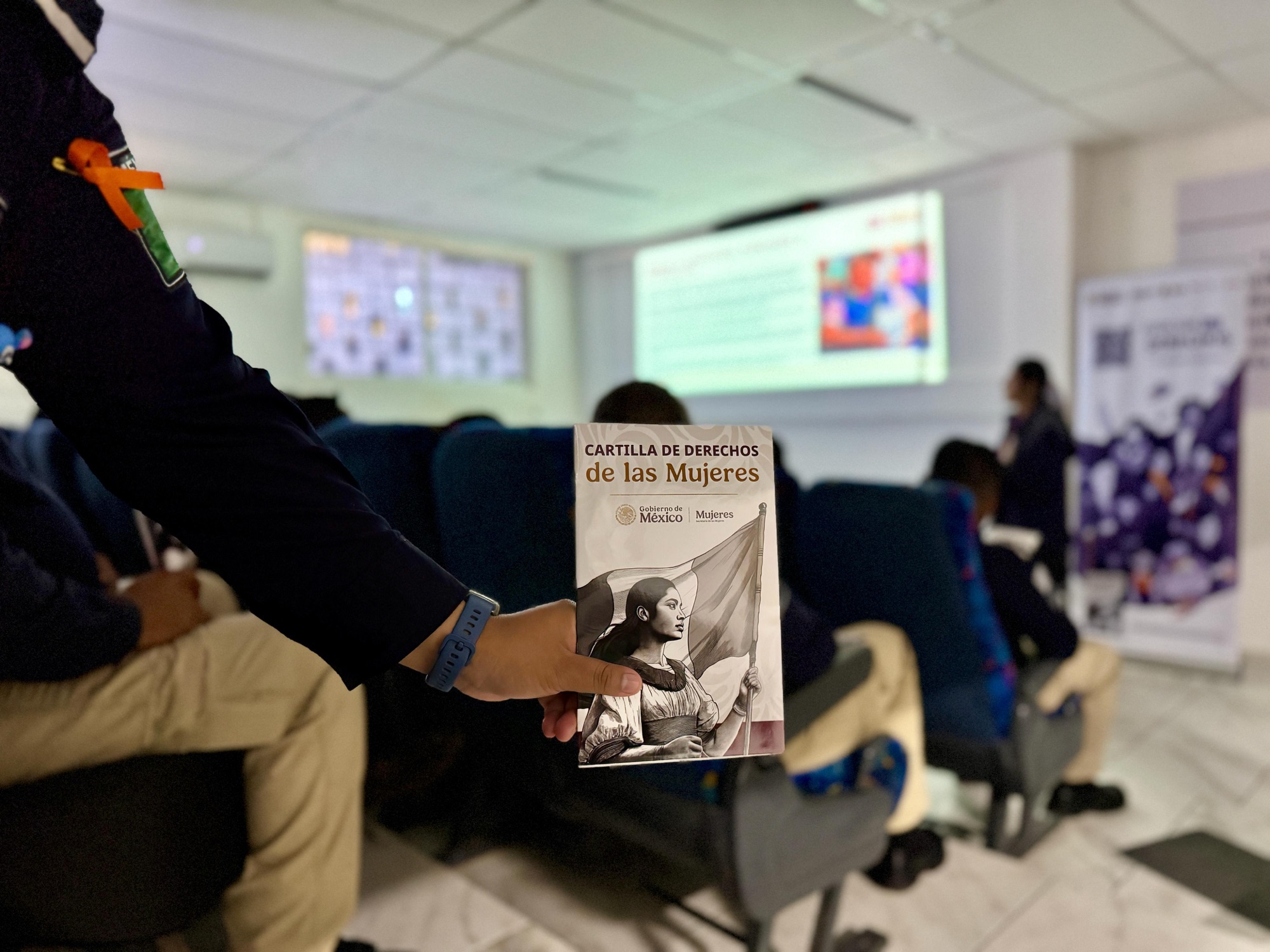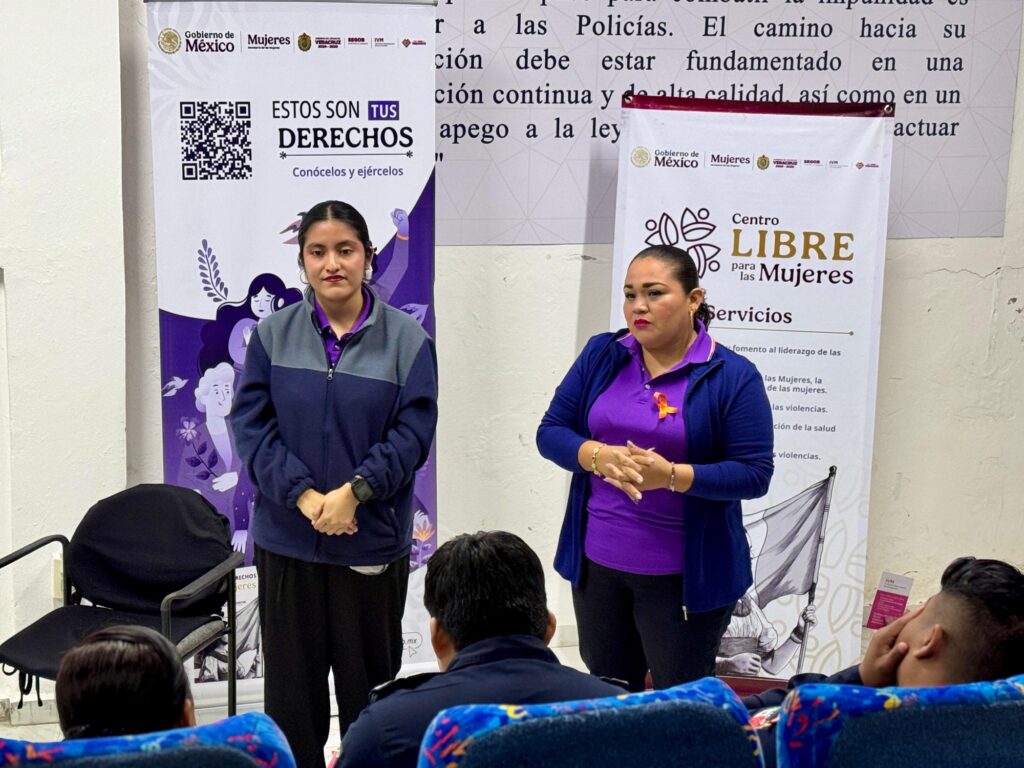La iniciativa se realizó en coordinación con el Centro Libre para las Mujeres, que impartió una plática de sensibilización y orientación a las y los policías municipales, con el propósito de reforzar la colaboración institucional y mejorar la atención a mujeres en situación de vulnerabilidad.