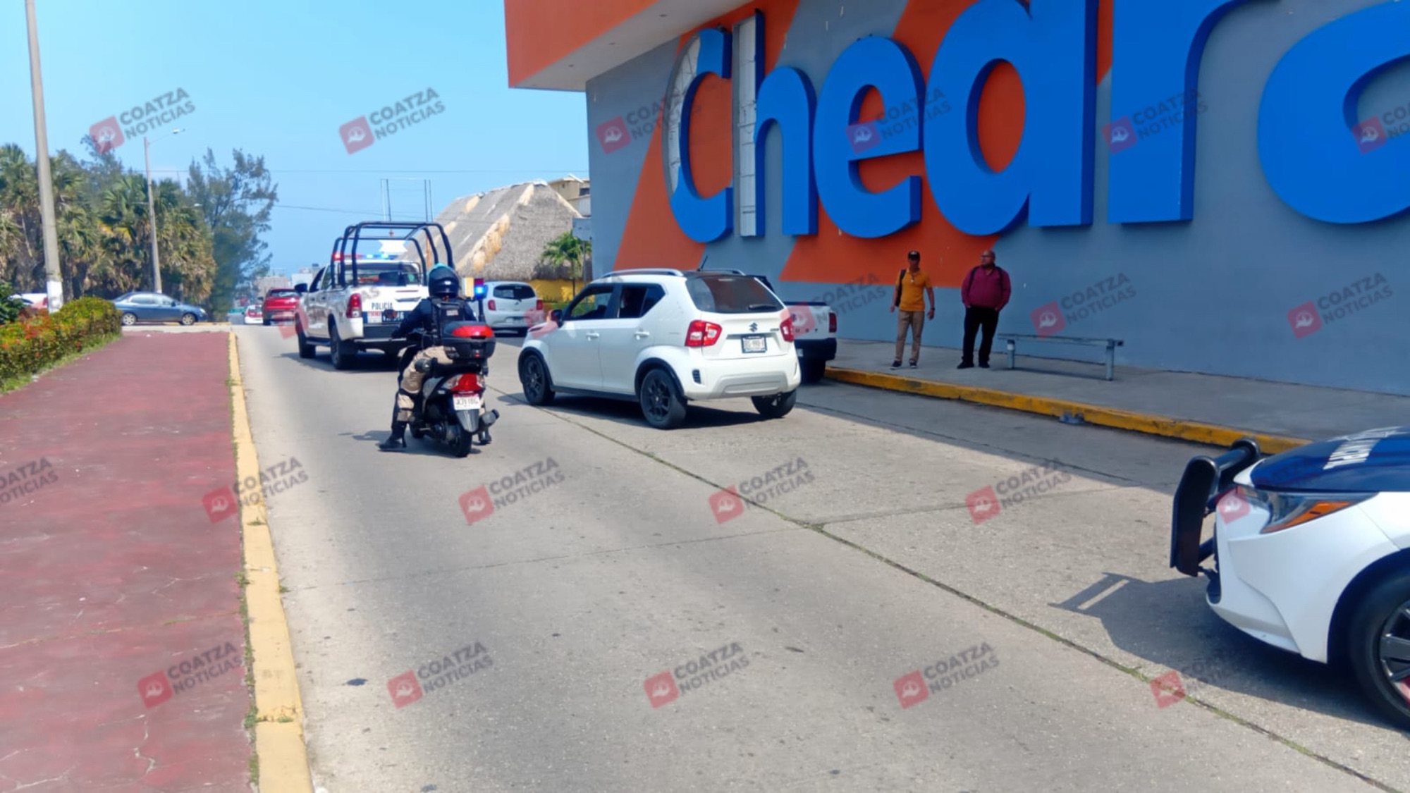 Los hechos ocurrieron frente a la tienda Chedraui 1, ubicada en la esquina de Revolución e Independencia, donde los uniformados atendieron un reporte relacionado con el conductor de un vehículo marca Suzuki, tipo Ignis, color blanco, con placas DRS-990-F del estado de Chiapas, el cual se encontraba estacionado en el lugar.