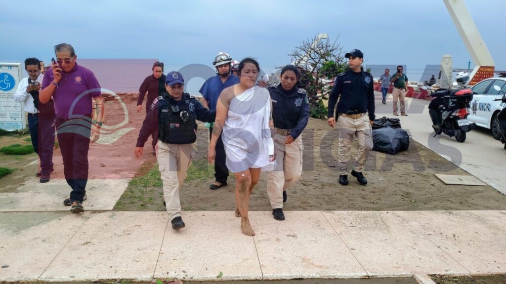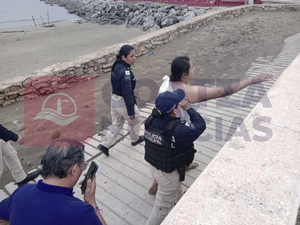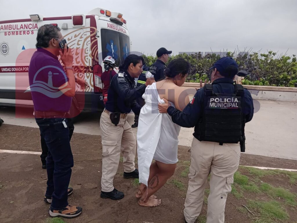 Una mujer con posible padecimientos mentales, fue reportada ante las autoridades, cuando se bañaba sin ropa en el mar, a la altura de Las Escolletas.